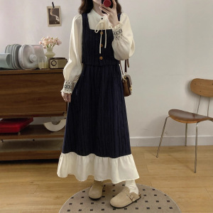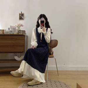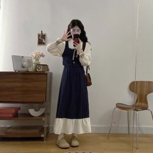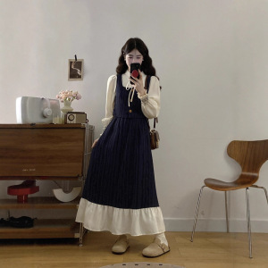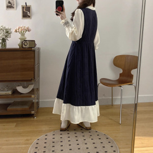减龄气质假两件拼接连衣裙女2025年秋法式文艺俏皮收腰荷叶边裙子