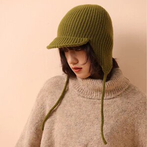 韩范100%WOOL纯羊毛短檐护耳帽女秋冬针织飞行帽巴拉克拉法毛线帽