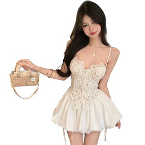 18YX5831欧美2025跨境外贸蕾丝带胸垫收腰裹胸花苞短裙裤两件套装