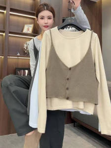 温柔风套装吊带马甲长袖针织衫叠穿两件套宽松显瘦时尚春秋季新款
