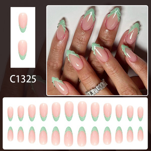 中款亮面水滴甲欧美跨境外贸清新绿色法式尖3D立体滴胶穿戴甲24片