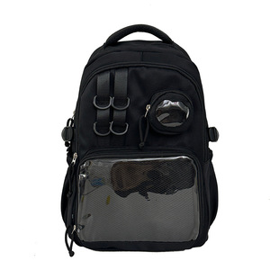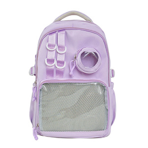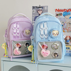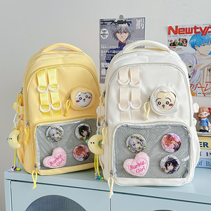 可爱大学生双肩包学院风透明书包纯色吧唧痛包初高中简约小众背包
