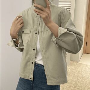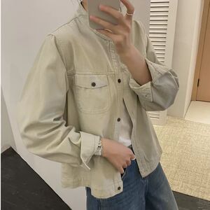 棉小立领短款外套女春秋新款水洗斜纹棉洋气韩版休闲工装夹克女
