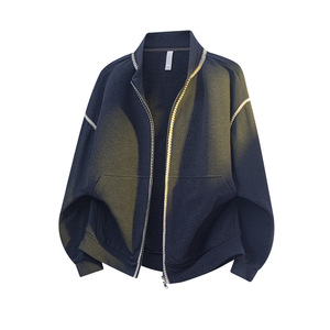 美式拼接撞色棒球领外套男2025秋季新款复古宽松情侣休闲卫衣夹克