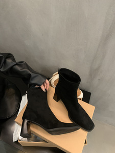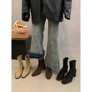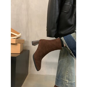 女士高跟短靴2025新款秋冬法式复古绒面粗跟瘦瘦靴洋气韩系小踝靴