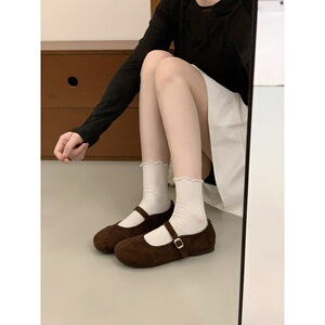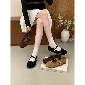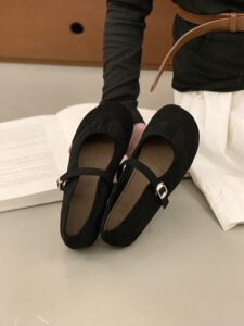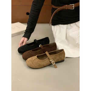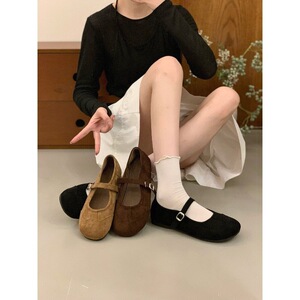 复古圆头浅口单鞋女平底2025新款春秋气质百搭一字带玛丽珍豆豆鞋