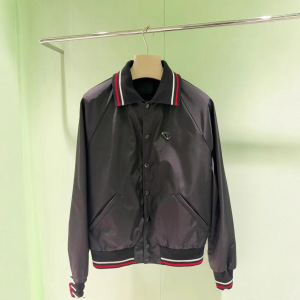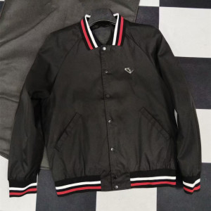 2025早秋新款原标P家三角铁标拼色螺纹小翻领棒球服夹克外套男女