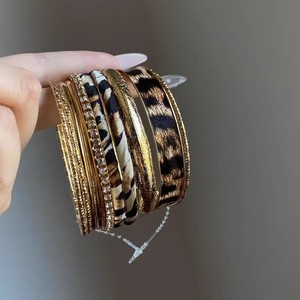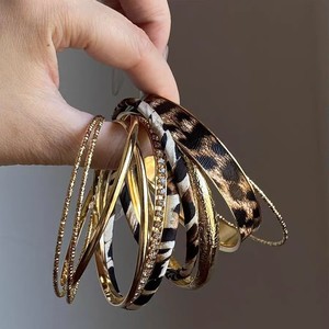 欧美风轻奢多层豹纹手镯时尚高级感设计叠戴手环甜酷辣妹个性手饰