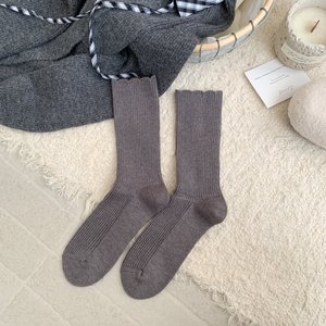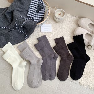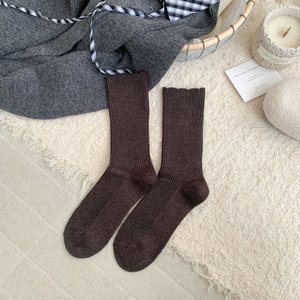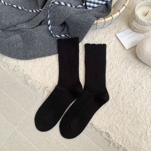 25秋冬新款袜子女中筒袜粗针仿羊毛女袜花边袜子女 日系ins潮休