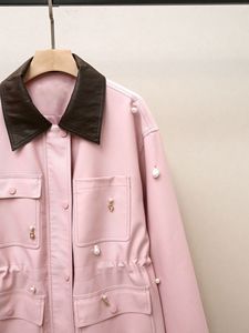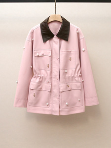 深圳南油高端女装秋季新款法式甜美风拼接翻领钉珠抽绳牛仔外套女