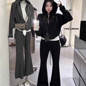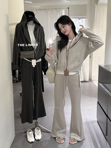 THE LIMON柠檬绿茶2025冬季两件套运动连帽卫衣上衣+松紧阔腿裤
