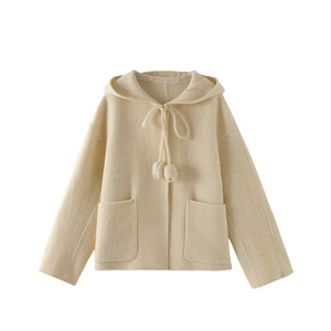 双面羊绒大衣羊毛大衣女秋冬款短款连帽毛呢外套百搭休闲双面呢