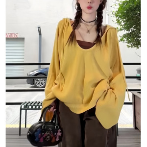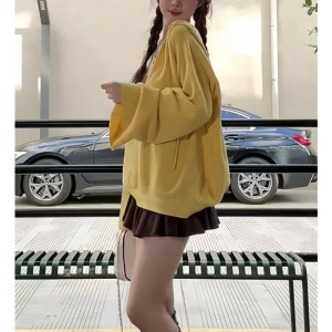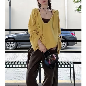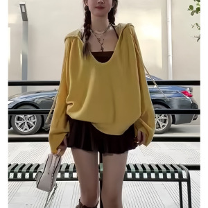 多巴胺连帽长袖针织衫女秋冬穿搭慵懒风v领毛衣宽松休闲韩系上衣