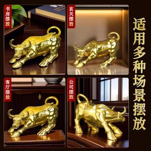 纯铜华尔街铜牛摆件金牛气冲天工艺品办公室桌面牛市全黄铜牛摆件