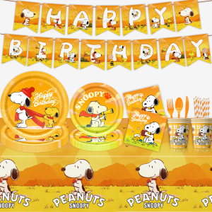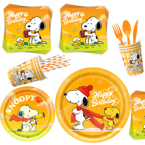 亚马逊新款卡通史努比主题生日派对装饰品一次性桌布纸盘纸杯餐具