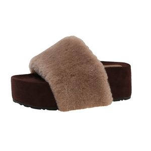 7CM厚底毛毛拖鞋女外穿2025年秋冬季新款韩版时尚一字高跟棉拖鞋