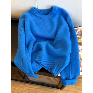 慵懒超显白克莱因蓝套头毛衣女装秋季2025新款圆领内搭针织衫上衣