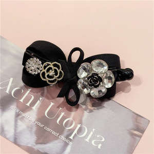 韩国高级感小香风水钻花朵后脑勺竖夹马尾夹向下香蕉夹头饰发饰女
