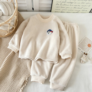 秋冬2025新款加绒加厚儿童睡衣男女童韩版保暖睡衣套装童套装代发