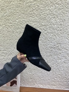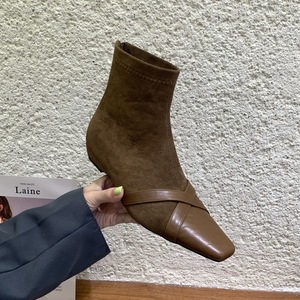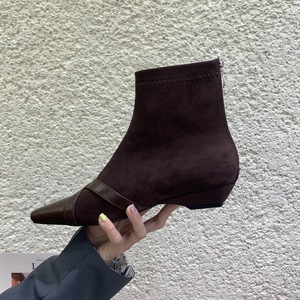 法式美拉德棕色方头小短靴女2025秋冬超火复古小坡跟洋气瘦瘦靴子
