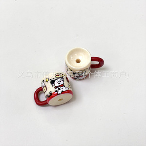 通孔狗狗印花水杯串珠笔配件diy手工饰品手机链挂件散珠饰品材料