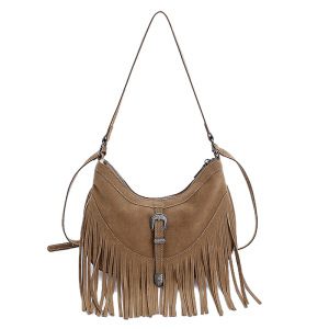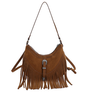 韩版休闲麂皮绒小方包女百搭质感磨砂流苏包小众洋气单肩斜挎包潮