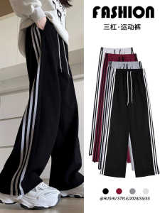 侧边条纹运动裤女款2025新款秋季美式卫裤休闲宽松加绒加厚阔腿裤