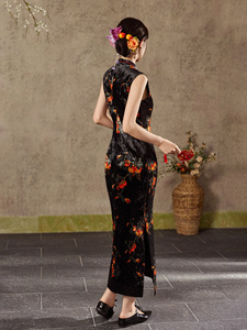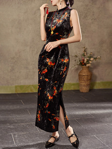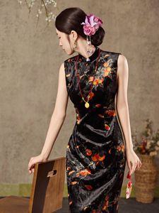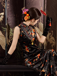 秋季2025新款高端优雅气质旗袍复古印花刺绣改良无袖连衣裙 N8071