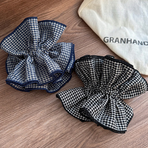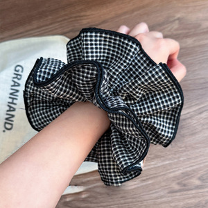 韩系简约格子多层大肠发圈女高级感丸子头发绳头绳头花低马尾发饰
