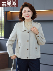 妈妈装时尚夹克外套中老年女装春秋高级感百搭休闲立领宽松短外套