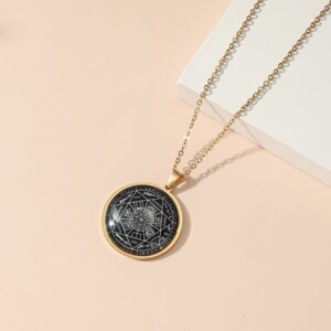 欧美跨境七大天使勋章玻璃吊坠项链不掉色不氧化六芒星阵夜光项链