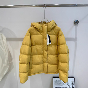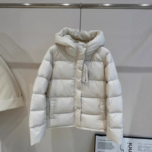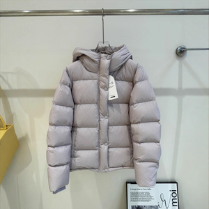 平湖95白鸭绒羽绒服女2025新款韩版短款连帽小个子紫色面包服外套