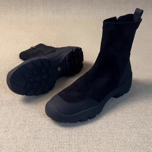 羊皮版~2025年新款复古圆头松糕底短靴显瘦侧拉链黑色马丁靴女款