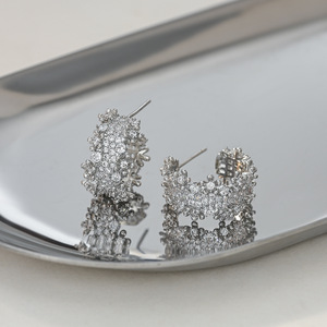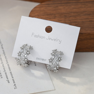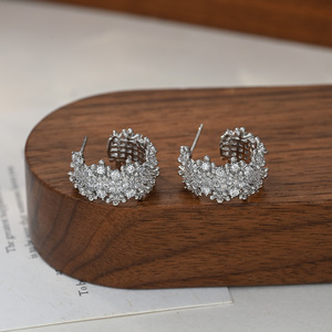 韩版时尚锆石耳钉女S925银针高级感几何C形耳饰精致百搭网红耳环