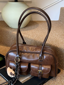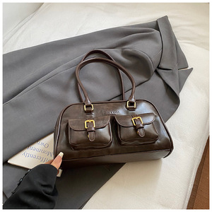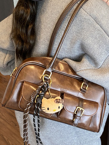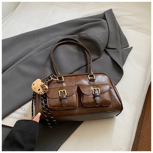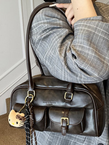 2025新品波士顿枕头包秋季复古美拉德小众腋下女包保龄球女士背包