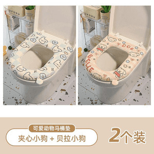 防水马桶坐垫带提手可爱小狗四季通用坐便套抗菌马桶贴实用马桶垫