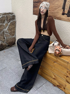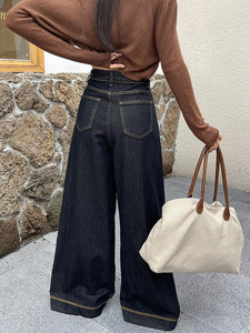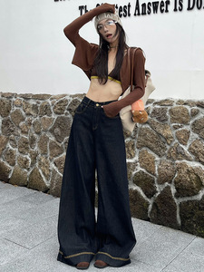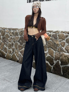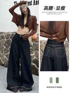 宽松显瘦时尚仔裤女秋冬季新品高腰显瘦拖地阔腿长裤复古高街休闲