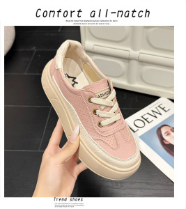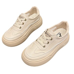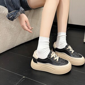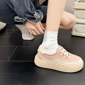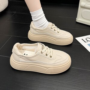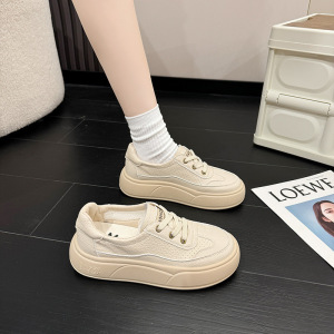 软皮版~真皮小白鞋女秋季新款透气防滑软底百搭休闲厚底中跟板鞋