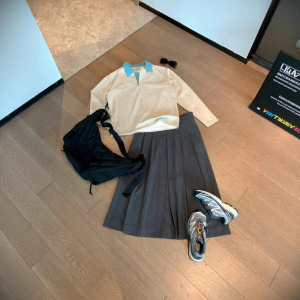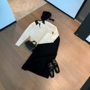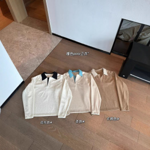 032258 秋季新款美式长袖polo衫拼色衬衫领潮牌假两件宽松长袖