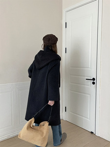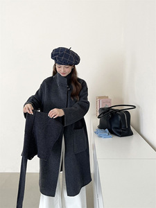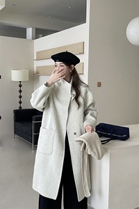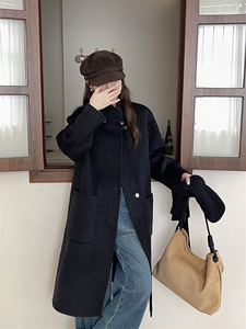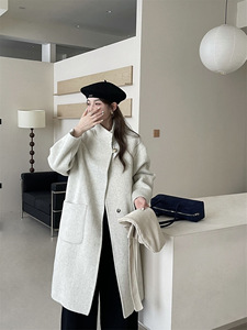 斯卡露立领连帽双面羊绒大衣女长款2025秋冬新款高级感羊毛呢外套