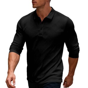 跨境热卖男士休闲欧美翻领polo衫男款t恤修身坑条热卖长袖打底衫