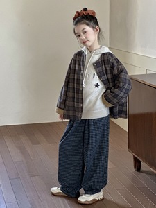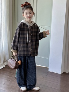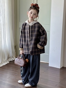 女童春秋双面穿外套2025秋季新款韩系格子外套女孩百搭夹克潮批发