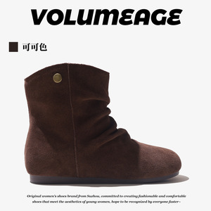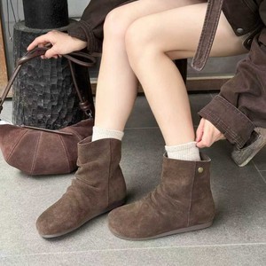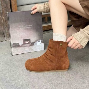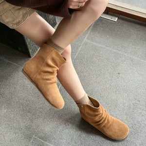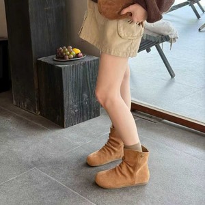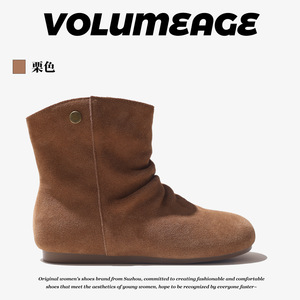 头层牛皮韩版堆堆靴女2025秋冬款真皮内增高马丁靴复古褶皱短靴女