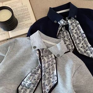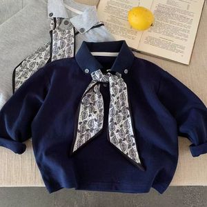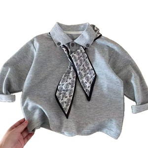 儿童长袖polo衫2025春秋男童个性丝带打底衫宝宝小童翻领大童上衣