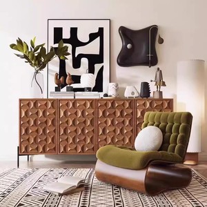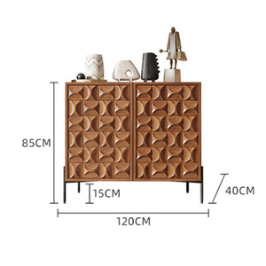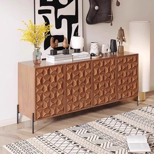 意式轻奢实木餐边柜中古诧寂风实木雕刻装饰收纳柜复古入户玄关柜