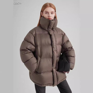 平湖江南90白鸭绒冬装新品大翻领泡芙羽绒服大牌宽松拉链立领外套