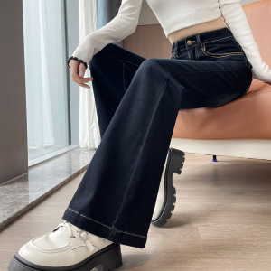 蓝灰高腰喇叭牛仔裤女秋季新款时尚修身显瘦小个子马蹄微喇拖地裤