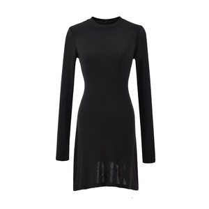 纯欲风圆领长袖不规则连衣裙女春秋季新款收腰修身显瘦辣妹短裙