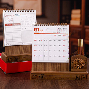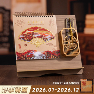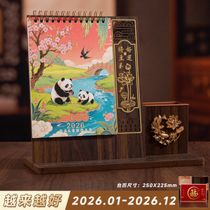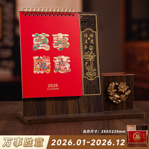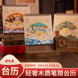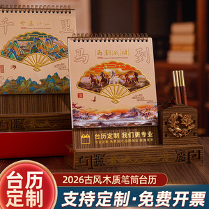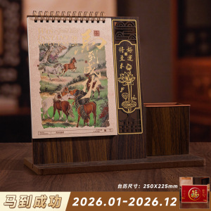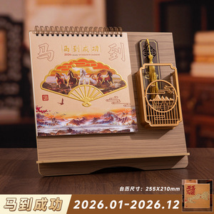 2026马年新款国风台历企业办公广告礼品日历桌面摆件月历定制logo