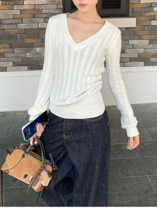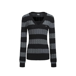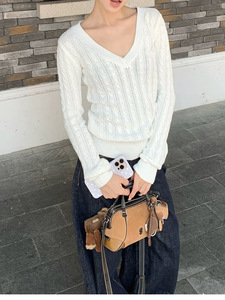 复古V领麻花条纹慵懒感毛衣女秋宽松情侣针织上衣潮